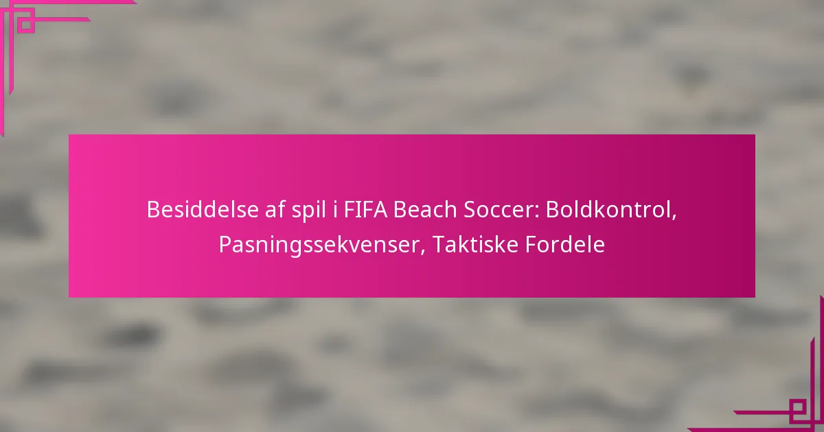Besiddelse af bolden i FIFA Beach Soccer giver flere taktiske fordele, herunder forbedret boldkontrol, effektive afleveringssekvenser og strategisk positionering. Disse elementer bidrager til tidsstyring, modstandertræthed og samlet holdkohæsion, hvilket gør det muligt for hold at udnytte plads og forstyrre defensive formationer.